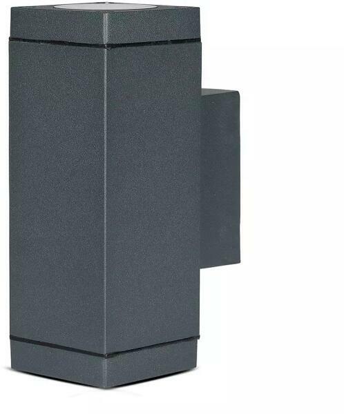IP44-es kültéri oldalfali lámpatest GU10 foglalattal : szögletes fali lámpa, amely két irányba világít. A felfelé és lefelé világító lámpatesttel esztétikusan kiemelhetjük a homlokzat struktúráját, burkolatát is, de a közlekedéshez használt fal melletti útvonalak megvilágítására is alkalmas. A lámpatest fényforrást nem tartalmaz, a lámpába szerelt 2 darab GU10-es