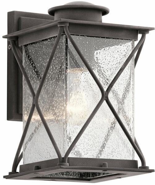 Rusztukus barna színű fém kültéri fali lámpa fagyott üveg búrával, IP44-es védelemmel.