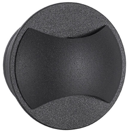 Alumíniumból készült, matt fekete színű kültéri oldalfalba süllyeszthető lámpa. IP65-ös védelemmel rendelkezik, azaz kisnyomású vízsugár ellen védett. 3000Kelvines, azaz meleg fehér fényű beépített LED fényforrást tartalmaz, mely nem cserélhető. Világítási szöge 19fok. Ideális választás lépcsőmegvilágításnak. Kivágási átmérője 55mm. Specifikációk:Gyár