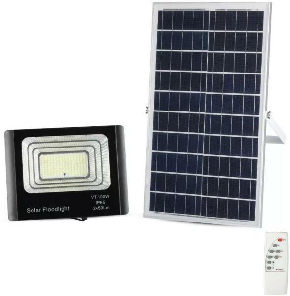Napelem panel + akkus LED reflektor csomag Különálló napelemmel rendelkező szolár LED reflektor család, cserélhető akkumulátorral, távirányítóval. A napelemes LED fényvető család tagjai: VT-25W - 12 Wattos napelemmel: 550 lumen VT-40W - 16 Wattos napelemmel: 1050 lumen VT-60W - 20 Wattos napelemmel: 1650 lumen VT-100W - 35 Wattos napelemmel: 2450 lumen VT-200W - 40 Wattos napelemm