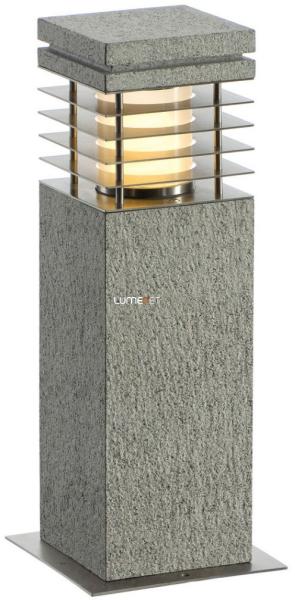 ARROCK GRANITE szürke-króm IP44 E27 kültéri allólámpa angol nyelvű gyátrói leírása: The floor luminaire ARROCK GRANITE consists of the natural product granite and is available in two different heights. Due to the special choice of material each lamp is unique. With protection class IP44, it is suitable for outdoor use. As an option an earth spike as well as a connection box for safe ele
