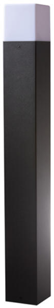 Fekete, szögletes formavilágú kültéri állólámpa. A Sorano család nagyobbik, 70 cm magas tagja. IP54-es védelmének köszönhetően védve van a fröccsenő vízzel, illetve a porral szemben. A csomagolás a fényforrást nem tartalmazza. Specifikációk:Gyártó: AZzardo Cikkszám:: AZ-4445 Foglalat: 1 x E27 Méret (ma x sz x mé): 700 x 85 x 85 mm IP-védettség: IP54 Tápfeszültség: