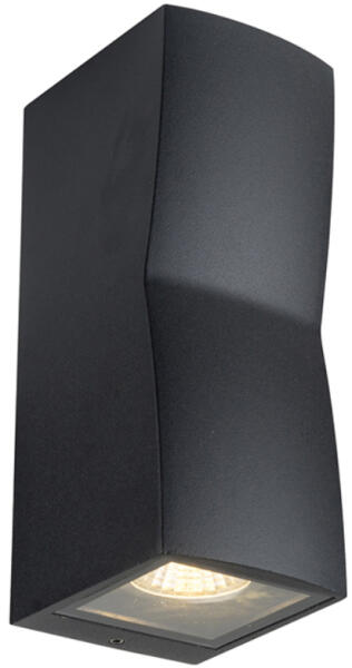 Fekete, modern kültéri fali lámpa, mely mindkét irányba világít, így nyújtva kellemes megvilágítást. IP54-es védelmének köszönhetően védve van a fröccsenő vízzel, illetve a porral szemben. A csomagolás a fényforrást nem tartalmazza. Specifikációk:Gyártó: AZzardo Cikkszám:: AZ-4345 Foglalat: 2 x GU10-MR16 Méret (ma x sz x mé): 180 x 70 x 85 mm IP-védettség: IP54 Tá