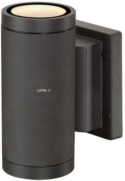 MYRA antracit IP55 GU10 kültéri fali és mennyezeti állítható spot lámpa angol nyelvű gyátrói leírása: The wall light of the MYRA series is made from painted aluminium and glass, which covers the lamp. Thanks to the position of the two sockets which are fitted, the mounted luminaire produces two equal but opposite cones of light (UP/DOWN). With protection class IP55, it is suitable for