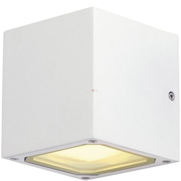 SITRA CUBE fehér IP44 GX53 kültéri fali lámpa angol nyelvű gyátrói leírása: Cube-shaped wall light SITRA CUBE made from painted aluminium. Thanks to the position of the two sockets which are fitted, the mounted luminaire produces two equal but opposite cones of light (UP/DOWN). With protection class IP44 it is suitable for outdoor use. The electrical connection of the luminaire, which com