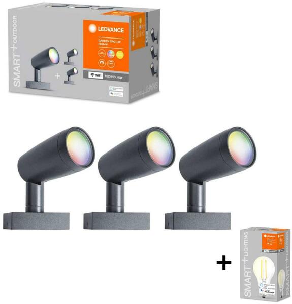 Fedezd fel a LEDVANCE Smart+ WiFi Garden Spot Multicolor 3-as csomagját, amely minden kertet egyedi fényjátékkal tölt meg, így varázslatos hangulatot teremtve. A csomag három darab, sötétszürke alumíniumból készült, IP65 védettségű spotlámpát tartalmaz, amelyek kiválóan ellenállnak az időjárás viszontagságainak. Az egyes spotlámpák 14,5W teljesítményűek és 680 lume