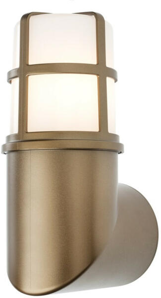 Sárgaréz színű polikarbonát, ABS kültéri fali lámpa UV álló opálos polikarbonát búrával, 1db E27-es foglalattal, IP54-es védelemmel. A lámpa fényforrást nem tartalmaz.