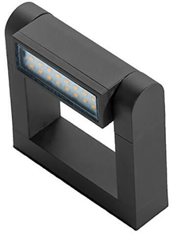 Modern stílusú, szürke színű, szögletes formájú fali lámpa. A lámpa világítási szöge állítható. Meleg fehér fényű, beépített LED fényforrást tartalmaz, mely nem cserélhető. IP54-es védelemmel rendelkezik, amely véd a fröccsenő víz ellen, illetve nem hatolhat be olyan mennyiségű por, amely zavarná a berendezés működését. Specifikációk:Gyártó: AZzardo Cikks