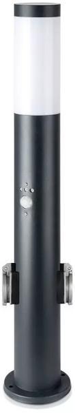 V-TAC Szürke kültéri állólámpa E27-es foglalattal, 2 db konnektorral, mozgásérzékelővel Szürke színű rozsdamentes acél vázas, 60 cm magas álló lámpa, melyben egy maximum 60 Watt teljesítményű E27-es foglalatú, fényforrás helyezhető. Előnye ezáltal, hogy ha meghibásodik a fényforrás, egyszerűen tudjuk cserélni azt. Kültéri állólámpa 2 db hálózati csatlakozóal