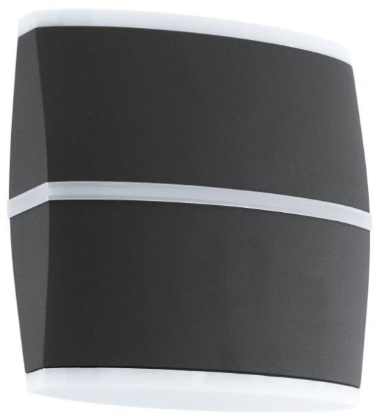 IP54-es védelemmel ellátott modern fali lámpa, sötétszürke színű öntött alumíniumból, dupla diffúzorral: alul átlátszó üveggel és dekoratív átlátszó polikarbonáttal. A lámpa GU10 foglalattal, cserélhető fényforrással került kialakításra. A lámpa fényforrá. .