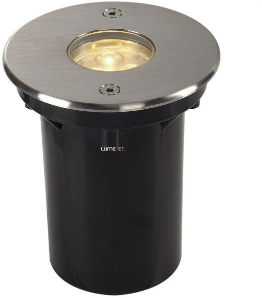 DASAR 920 rozsdamentes acél IP67 6W 3000K talajba süllyeszthető LED lámpa angol nyelvű gyátrói leírása: DASAR LED HV inground light is the accessible high-voltage inground light from SLV that impresses with its stainless steel screen and glass cover in a partial satin finish. Its IP 67 protection class makes it ideal for outdoor use. The rotatable and pivoting GU10 fitting allows individu