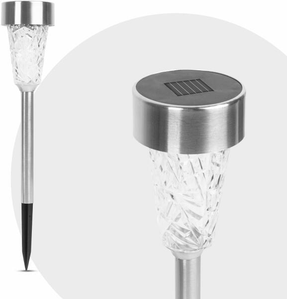 Leszúrható szolár lámpa - hidegfehér 7,5 x 28 (+10) cm Tegye különlegessé kertjét ezzel a LED-es szolár lámpával! A különleges formájú plexin a fény gyönyörűen törik meg, ezáltal teszi kertjét egyedivé. Amint besötétedik, a lámpa automatikusan bekapcsol, napkeltekor pedig kikapcsol. Napközben a szolárcellák a napenergiát árammá alakítják és az akkumulátorban el