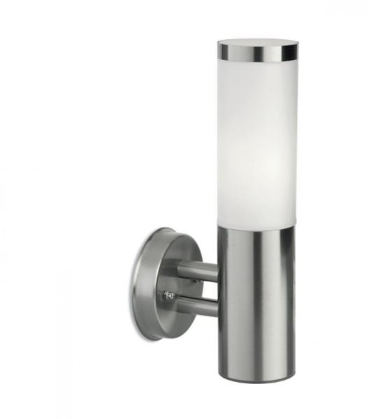 Kültéri fali lámpa nemesacél vázzal és opálos polikarbonát búrával, IP 44-es védelemmel.