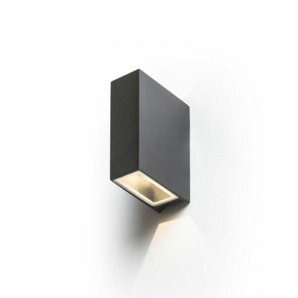 Fehér színre festett alumínium kültéri fali lámpa alul és felül üveg betétes búrával, G9-es foglalattal, IP54-es védelemmel. A lámpa felfelé és lefelé egyaránt világít.