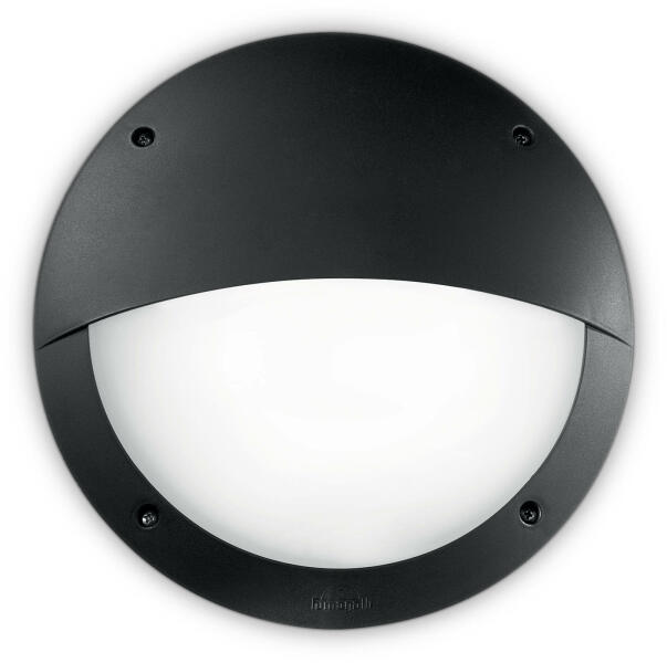 Kültéri kör alakú alumínium lámpatest opál diffúzorral polikarbonátból, mennyezetre vagy falra való felszereléshez.