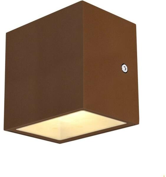 SITRA CUBE WL rozsda IP44 10W 3000K kültéri fali LED lámpa angol nyelvű gyátrói leírása: SITRA CUBE wall light made from painted aluminium. Thanks to the position of the two built-in high-performance LEDs, the fitted luminaire produces two equal, but opposite, cones of light (UP/DOWN). With protection class IP44 it is suitable for outdoor use. The electrical connection of the luminaire, wh