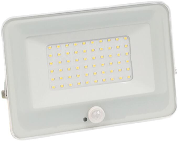 VEGA20 keskeny típusú SMD LED fényvető mozgásárzékelővel 20W 4000K, fehér Névleges villamos teljesítmény (P)=20W Névleges betáp. feszültség (V)=220-240VAC Fényáram: 1800lumen Színhőmérséklet: 4000K Sugárzási szög: 110° Színvisszaadási tényező>=70% Védettség:IP65 Test színe:fehér Mozgásérzékelő tulajdonásgai - érzékelési szög: 110° - maximális érzék