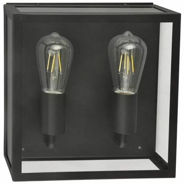 Modern stílusú kültéri fali lámpa két E27-es foglalattal. A csomagolás a fényforrást nem tartalmazza. AZ-4487 cikkszámon található mozgásérzékelő mesterlámpával sorba köthető 150W-ig. IP44-es védelemmel rendelkezik, azaz fröccsenő víz ellen védett. Specifikációk:Gyártó: AZzardo Cikkszám:: AZ-4488 Foglalat: 1 x E27 Méret (ma x sz x mé): 280 x 280 x 100 mm IP-védetts