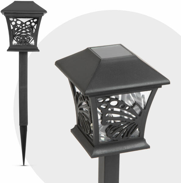 Eladási egység: 1db Tegye különlegessé kertjét LED-es szolár lámpával. A lámpa világító részét pillangó minta díszíti. Használhatja irányfényként vagy dekorációként is a szabadban. A leszúró tüske segítségével gyorsan és egyszerűen el tudja helyezni. Amint besötétedik, a lámpa automatikusan bekapcsol, napkeltekor pedig kikapcsol. Napközben a szolárcellák a na