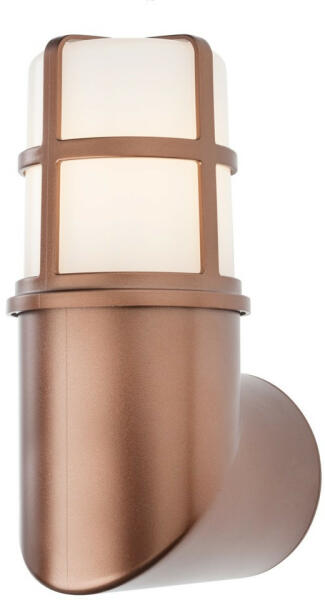 Réz színű polikarbonát, ABS kültéri fali lámpa UV álló opálos polikarbonát búrával, 1db E27-es foglalattal, IP54-es védelemmel. A lámpa fényforrást nem tartalmaz.