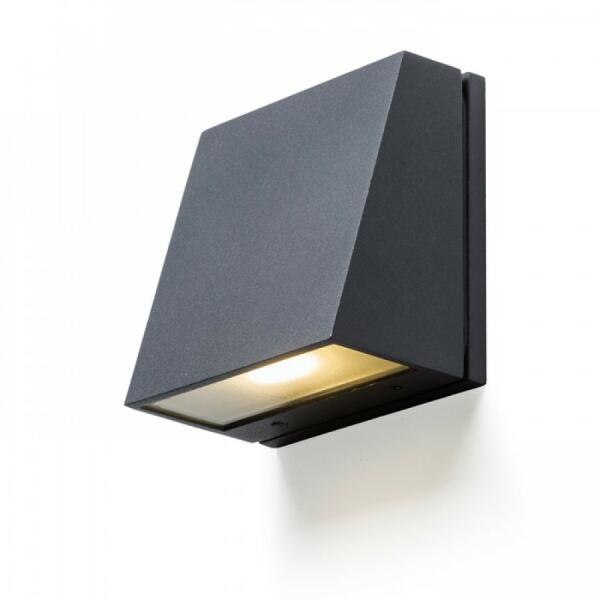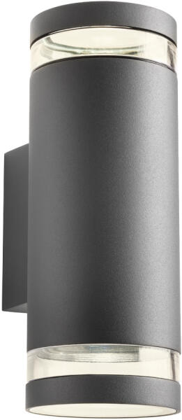 IP54-es védelemmel ellátott modern fali lámpa, sötétszürke színű öntött alumíniumból, dupla diffúzorral: alul átlátszó üveggel és dekoratív átlátszó polikarbonáttal. A lámpa GU10 foglalattal, cserélhető fényforrással került kialakításra. A lámpa fényforrá. .