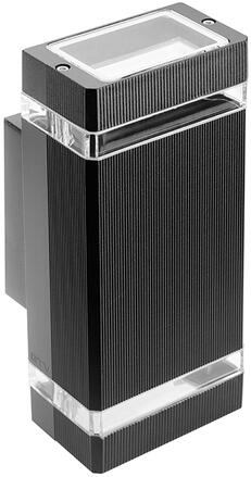 A modern dizájnnal jellemezhető homlokzati fali lámpa elegáns megoldás családi házak és modern lakótelepek számára. A lámpatest két beépített GU10-es foglalattal rendelkezik, a felhasználható fényforrások maximális teljesítménye 2x50 W. A lámpatest két irányban (fel-le) bocsát ki fényt. A lámpa a legjobb minőségű anyagokból készült, és IP54-es védettséggel rend