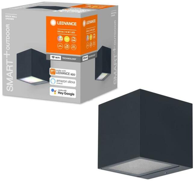 A LEDVANCE Smart Brick Multicolor kültéri fali LED lámpa kitűnő választás, ha modern, energiatakarékos és sokoldalú világítási megoldást keresel otthonod külső terei számára. Ez a 14W teljesítményű lámpa nem csak meleg fehér fényt (3000K) biztosít, hanem az RGBW színspektrum révén lehetővé teszi, hogy különféle hangulatokat varázsolj a kertbe, a teraszra vagy aká