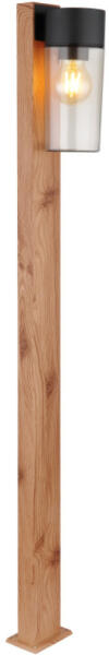 Fa hatású és fekete színű rozsdamentes acél kültéri álló lámpa füstüveg búrával, IP44-es védelemmel.