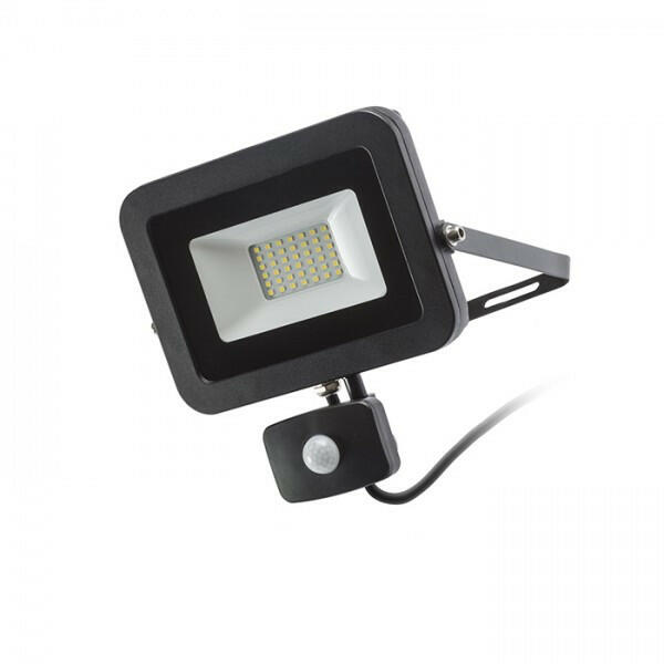 Nagy teljesítményű, lapos LED reflektor, fekete kivitelben mozgásérzékelővel.