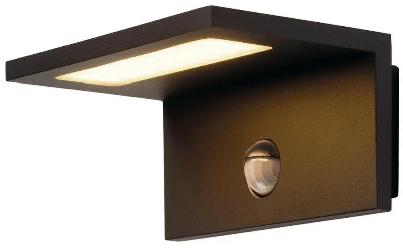 ANGOLUX SENSOR WL IP44 antracit IP44 10W 3000K mozgásérzékelős kültéri fali LED lámpa angol nyelvű gyátrói leírása: The ANGOLUX SENSOR wall light, which is equipped with a powerful, warm white LED, is available in several colours. The electrical connection of the aluminium luminaire is made directly to the 230V mains supply using the built-in driver. Thanks to its IP44 protection class