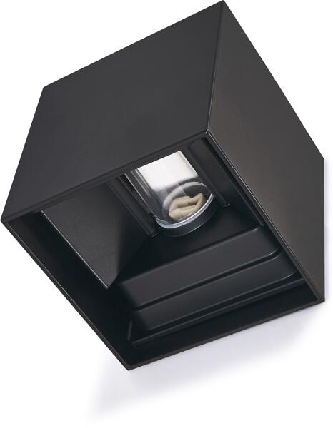 Fali lámpa modern dizájnnal. A magas fokú IP44 védettségnek köszönhetően tökéletesen alkalmas kültéri használatra. Két irányban sugározza a fényt (fel/le). Szabályozható világítási szög.