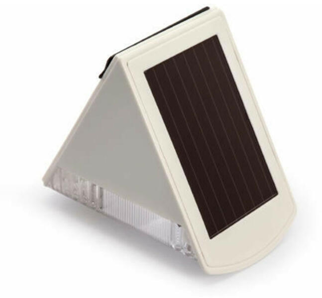Kompakt, napelemes lámpa beépített szolármodullal és infravörös mozgásérzékelővel 2 db, igen erős fényű LED teszi lehetővé a tájékozódást a sötétben Érzékelési szög: kb. 100°C, hatótávolság: max. 7 m A világítás az érzékelési tartományba való belépést követően kb. 1 perc időtartamra bekapcsolódik A villamos hálózattól függetlenül használható Alkon