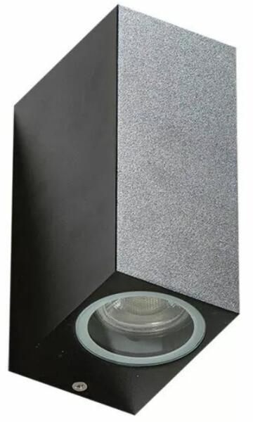 Modern stílusú, alumíniumból készült, fekete színű, kültéri fali lámpa. LED fényforrással üzemeltethető, mely nem tartozék. IP54-es védelemmel rendelkezik, mely por-víz elleni védettséget jelent. Le- és felfelé egyaránt világít. Specifikációk:Gyártó: AZzardo Cikkszám:: AZ-4268 Foglalat: 2 x GU10-MR16 Méret (ma x sz x mé): 150 x 70 x 90 mm IP-védettség: IP54 Tápfe