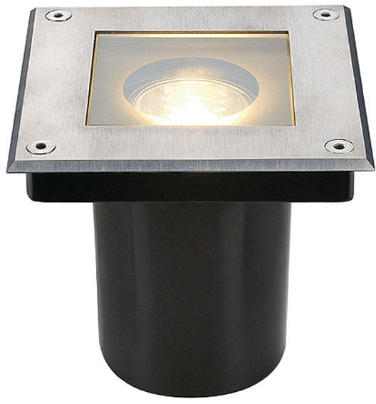 DASAR 70 rozsdamentes acél IP67 GU10 talajba süllyeszthető lámpa angol nyelvű gyátrói leírása: The accessible high-voltage inground light DASAR SQUARE GU10 impresses with its stainless steel screen and glass cover in a partial satin finish. Thanks to the rotatable and pivoting GU10 fitting, you can direct the light cone flexibly. And thanks to its IP 67 protection class, it is optimally s