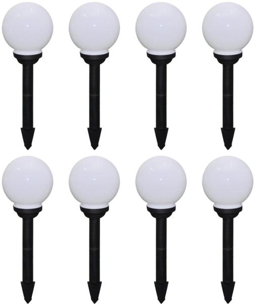 8 db kültéri gyalogjáró LED-lámpa cölöppel 15 cm Ez a 8 darabos LED-es napelemes készlet teljes felszereltséggel – cső, földbe szúrható cölöp, újratölthető akkumulátor – rendelkezik, és könnyen elhelyezhető. Tökéletes díszvilágítást biztosít kertek, teraszok, ösvények, utak és erkélyek számára. Mindegyik napkollektoros gömblámpa tartós műanyagból készü