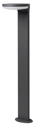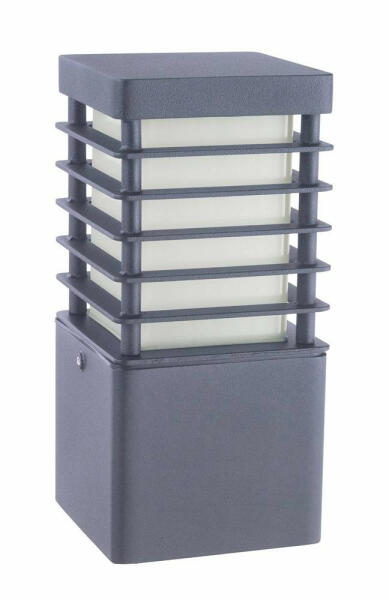 Szürke színűre festett alumínium vázas kültéri álló lámpa opál polikarbonát betétes búrával, beépített LED fényforrással és IP54-es védelemmel.
