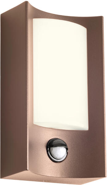 Falra szerelhető kültéri LED lámpa az Elia sorozatból tömör alumínium és opál búra kombinációval. Beépített mozgásérzékelővel.
