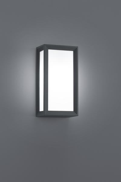 IP44-es védelemmel ellátott modern stílusú kültéri fali lámpa, öntött alumínium talppal és opál polikarbonát diffúzorral. Stílusos megoldás minden homlokzat, terasz, bejárati ajtó és veranda minőségi megvilágítására. A lámpa beépített LED fényforrással va. .