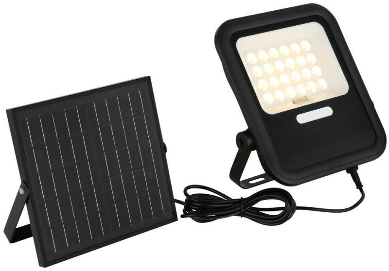 Solar lámpa, műanyag/alumínium/fém fekete, üveg átlátszó, szabályozható, időzítő, mozgatható, távirányító, akku:10000mAh 3,2V, IP65, SZxM:243x254mm, Mélység:140mm, kábel:3000mm, solar panel:20x30cm, tartozék:LED 6.5W 3.2V, 800lm forrás, 800lm kimenet, 3000K