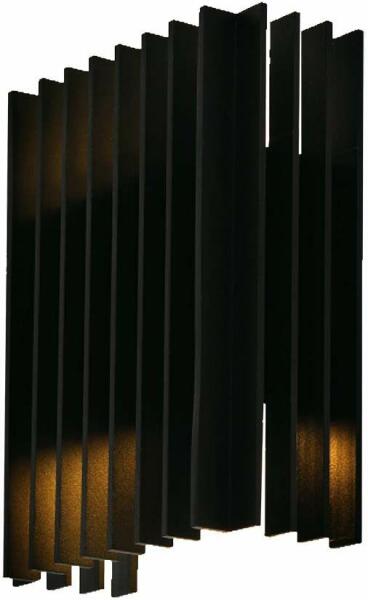 Sötét szürkére festett, alumínium vázas kültéri fali lámpa. A lámpa beépített LED fényforrásai négy irányban világítanak, ezzel különleges fényjátékot vetítve a homlokzatra. A lámpa IP54-es védelemmel rendelkezik.