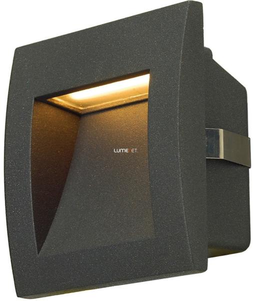 DOWNUNDER OUT LED S antracit-fekete IP55 2W 3000K falba süllyesztett kültéri útvonalmegvilágító lámpa angol nyelvű gyátrói leírása: The DOWNUNDER OUT LED S recessed wall light is made of aluminium, and outfitted with high output SMD LEDs that produce downward directed, glare-free light emission. Thanks to its IP55 protection class, the luminaire is suitable for outdoor use. The lumina