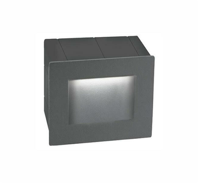 Szögletes, kültéri, besüllyeszthető lámpa. Lépcsővilágításra alkalmas. Anyaga alumínium, színe sötétszürke. A lámpa fénye 15 fokos szögben világít, meleg fehér fényű, beépített LED fényforrást tartalmaz, mely nem cserélhető. IP54-es védelemmel rendelkezik, amely véd a fröccsenő víz ellen, illetve nem hatolhat be olyan mennyiségű por, amely zavarná a berendezé