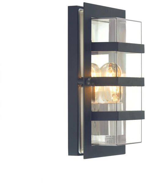 Prémium anyagokból a legújabb technológiával Norvégiában készült egyedi gyártású fali lámpa. A lámpa teste alumínium, fekete színű porszórt acél előlappal, átlátszó, kissé füstös polikarbonát betétes búrával. A lámpa IP54-es védetséggel rendelkezik. A lámpa 1db E27-es foglalattal rendelkezik, fényforrást nem tartalmaz.