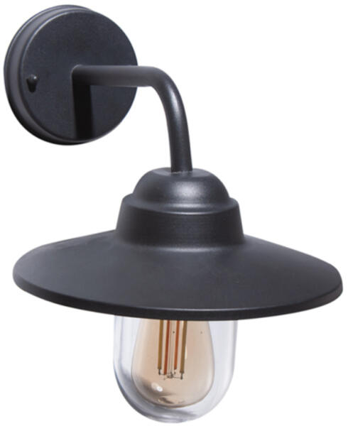 Modern stílusú kültéri falikar E27-es foglalattal. LED fényforrással üzemeltethető, melyet a csomagolás nem tartalmaz. A lámpa fekete színű, fém, búrája átlátszó polikarbonát. IP44-es védelemmel rendelkezik, azaz fröccsenő víz ellen védett. Specifikációk:Gyártó: AZzardo Cikkszám:: AZ-4489 Foglalat: 1 x E27 Méret (ma x sz x mé): 320 x 250 x 340 mm IP-védettség: IP44