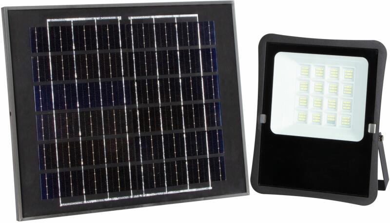 LED reflektor, napelem, újratölthető akkumulátorral, 16 W, 1200 lm, 6000K A fekete 16 W-os LED-es reflektor napelemmel és akkumulátorral, valamint távirányítóval IP65 védettségű. A távirányító segítségével távirányítóval kiválasztható a munkamód és 2 fényerőszint között lehet dönteni. A világítási idő programozható és a világítás erőssége szabályozható