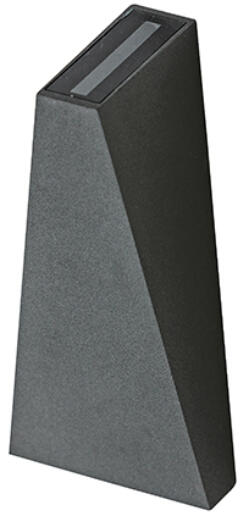 Modern stílusú, szürke színű, fémből és alumíniumból készült fali lámpa. Meleg fehér fényű, beépített LED fényforrást tartalmaz, mely nem cserélhető. IP54-es védelemmel rendelkezik, ami fröccsenő víz és por elleni védelmet jelent. Felfelé illetve lefelé is világít. Specifikációk:Gyártó: AZzardo Cikkszám:: AZ-2201 Foglalat: 1 x Beépített LED Méret (ma x sz x