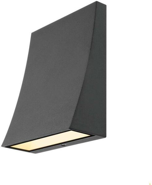 DELWA WIDE antracit IP44 10W 3000K alumínium fali LED lámpa angol nyelvű gyátrói leírása: The DELWA WIDE aluminium wall light is fitted with two powerful flat LEDs with a warm white colour of light. The electrical connection of the aluminium luminaire is made directly to the 230V mains supply using the built-in driver. With protection class IP44, the luminaire is available in several colour