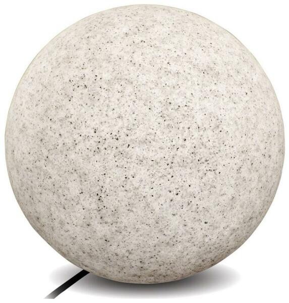 Ragyogó kerti labda. Polietilénből. Ellenáll a nedvességnek és a magas hőmérsékletnek, A kábel hossza 3 m. A fényforrás nincs benne.