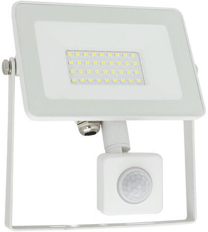 VEGA30 keskeny típusú SMD LED fényvető mozgásárzékelővel 30W 5500K, fehér színű Névleges villamos teljesítmény (P)=30W Névleges betáp. feszültség (V)=220-240VAC Fényáram: 2700lumen Színhőmérséklet: 4000K Sugárzási szög: 110° Színvisszaadási tényező>=70% Védettség:IP65 Test színe:fehér Mozgásérzékelő tulajdonásgai - érzékelési szög: 110° - maximális