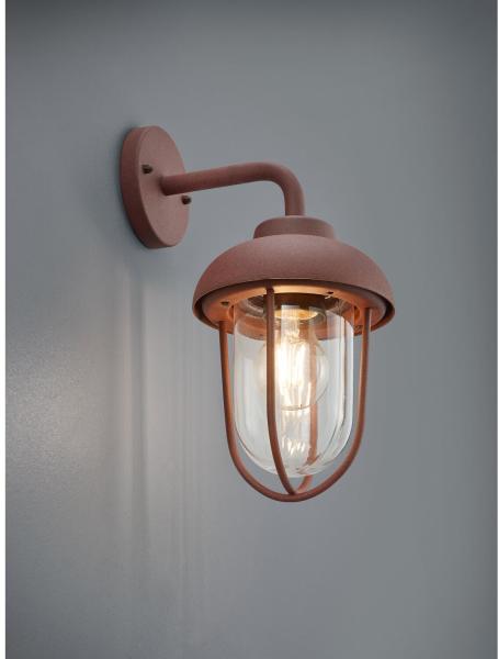 A teraszon vagy a bejárat környékén - a vintage stílusú fali lámpa nemcsak a sötét téli hónapokban tesz jó szolgálatot, hanem a hosszú nyári estéken is. Az IP44 érintésvédelmi osztály a 32 cm magas és 18 cm széles fali lámpát kültéri használatra ideálissá teszi. A rozsdaszínű design az átlátszó üvegburával kombinálva sokféleképpen kombinálható és dekoratí